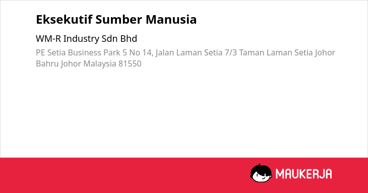 Sepenuh Masa Eksekutif Sumber Manusia Jobs, salary up to MYR 5,500 in WM-R Industry Sdn Bhd Johor Bahru - Maukerja